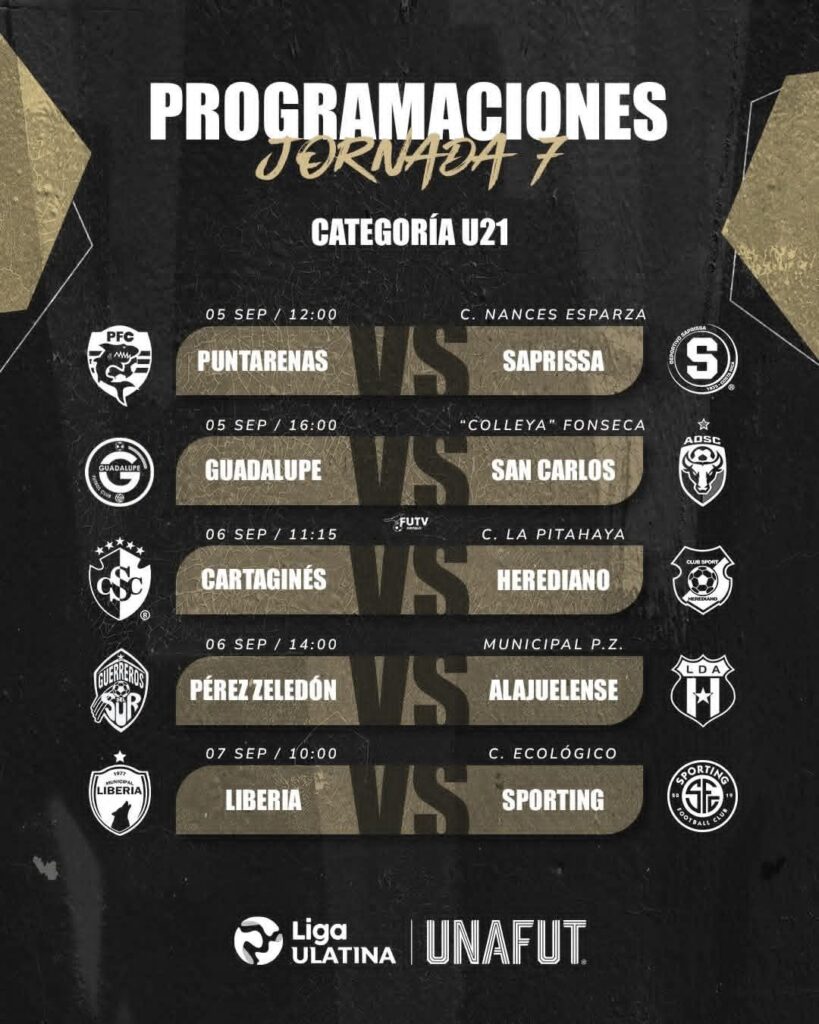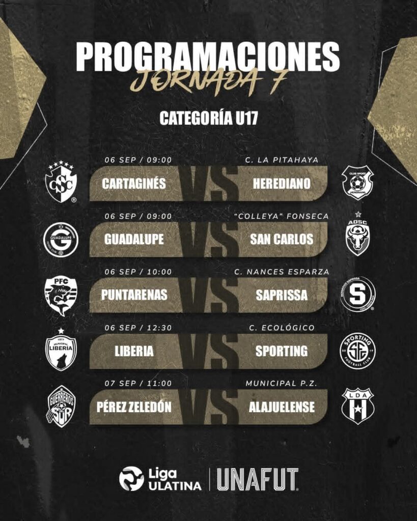 Este sábado 6 de setiembre, las categorías prospectos y élites del Cartaginés disputarán la sétima fecha del Torneo de Apertura 2025, Liga Ulatina.