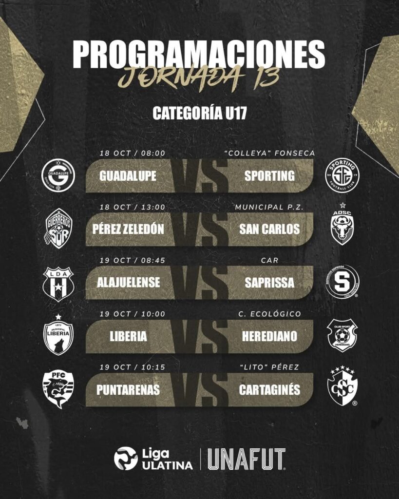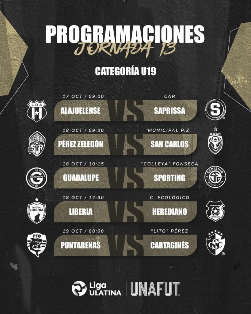 Este sábado 18 y domingo 19 de octubre, las categorías prospectos y élites del Cartaginés disputarán la décimo tercera fecha del Torneo de Apertura 2025.