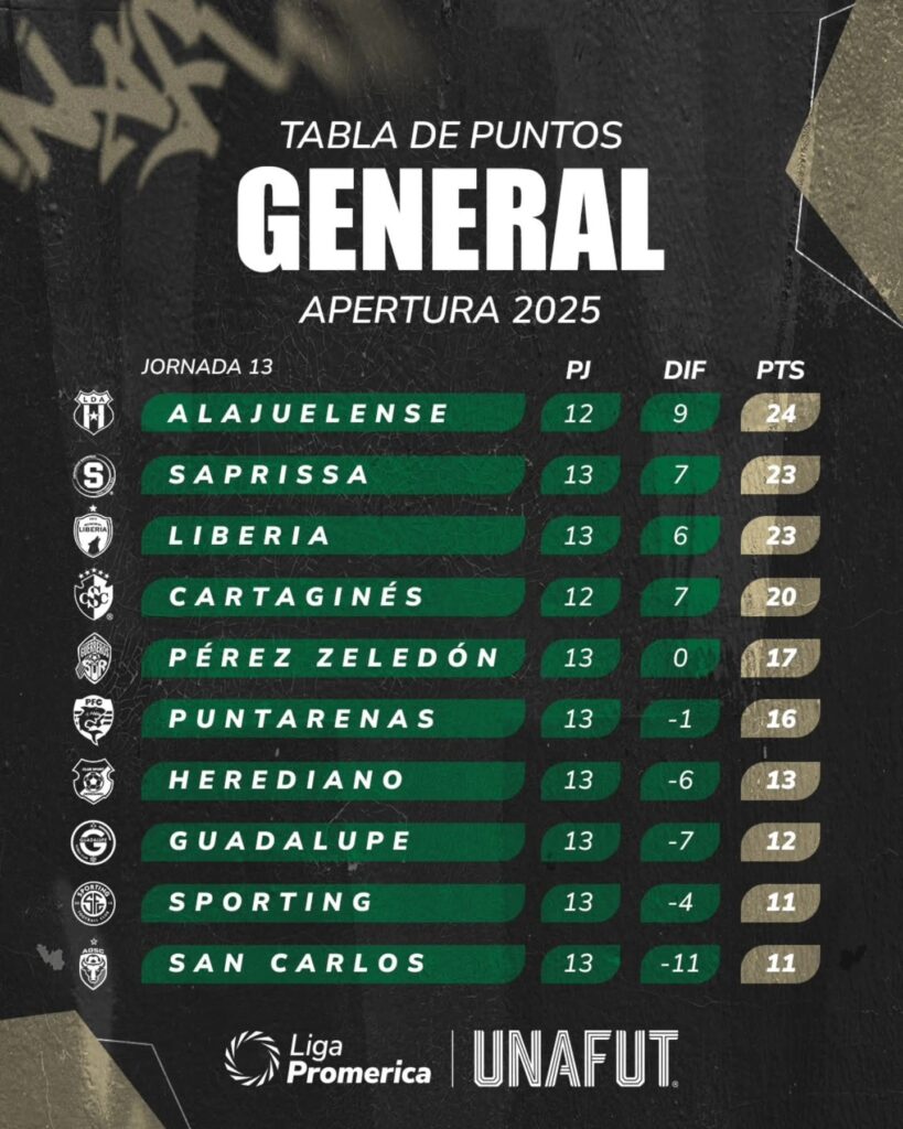 Este lunes finalizó la décima tercera jornada del torneo de apertura 2025.