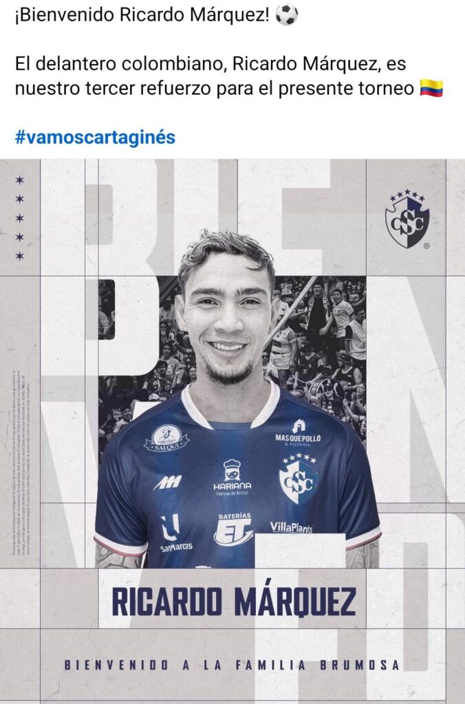 Este jueves anunció la llegada del delantero colombiano Ricardo Márquez a sus filas.