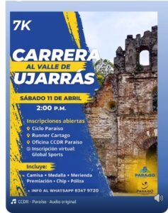 La competencia partirá desde la iglesia Nuestra Señora de Ujarrás en el centro de Paraíso y tendrá como meta las históricas Ruinas de Ujarrás, en el marco de la celebración a la Virgen de Ujarrás. Se trata de un recorrido cargado de simbolismo, donde cada kilómetro conecta a los atletas con la identidad y la Fe de la comunidad.