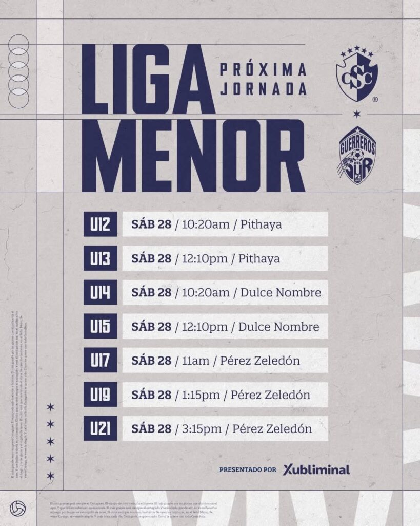 Este sábado 28 de marzo, las categorías élite jugarán de visita en el Valle del General mientras que los prospectos serán casa en las canchas de la Pitahaya y Dulce Nombre.